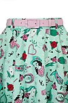 The flared silhouette flows beautifully from the waistband and is perfect for pairing with a petticoat. The included pastel pink belt highlights the waist, while hidden side seam pockets add both practicality and charm.