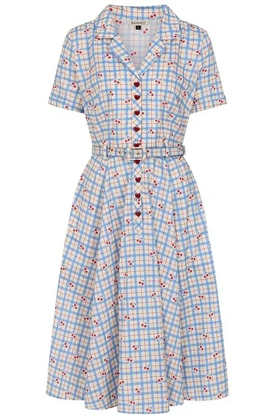 Lisa oma garderoobi rõõmsat vintage-hõngu Banned Retro Bella Cherry Check kleidiga. See 50ndate stiilist inspireeritud kleit ühendab klassikalise lõike ja mängulise kirsimustriga ruududisaini, luues naiseliku ja pilkupüüdva välimuse.