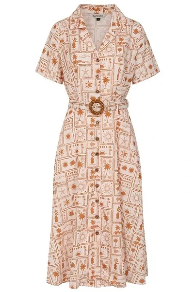 Lisa oma suvegarderoobi elegantset vintage-hõngu Banned Retro Kate Tonal Tropic kleidiga. See 50ndate stiilist inspireeritud särkkleit ühendab klassikalise lõike ja peene troopilise mustri, luues naiseliku ja ajatu välimuse.