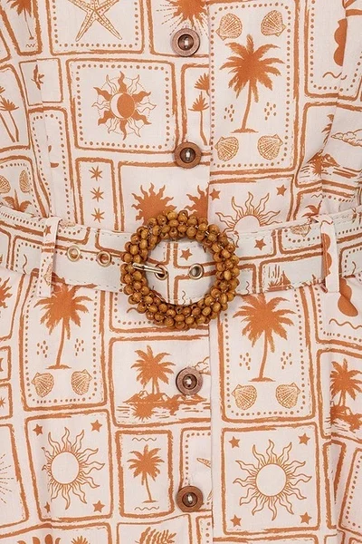 Kerge ja hingav puuvillane kangas teeb kleidi ideaalseks soojadeks päevadeks. Nööpkinnitusega esiosa ja vöökohale rõhuv siluett loovad kauni joone, samas kui puidust helmestega vööpannal lisab erilise detaili. Praktilised küljetaskud muudavad kleidi mugavaks igapäevaseks kandmiseks.
