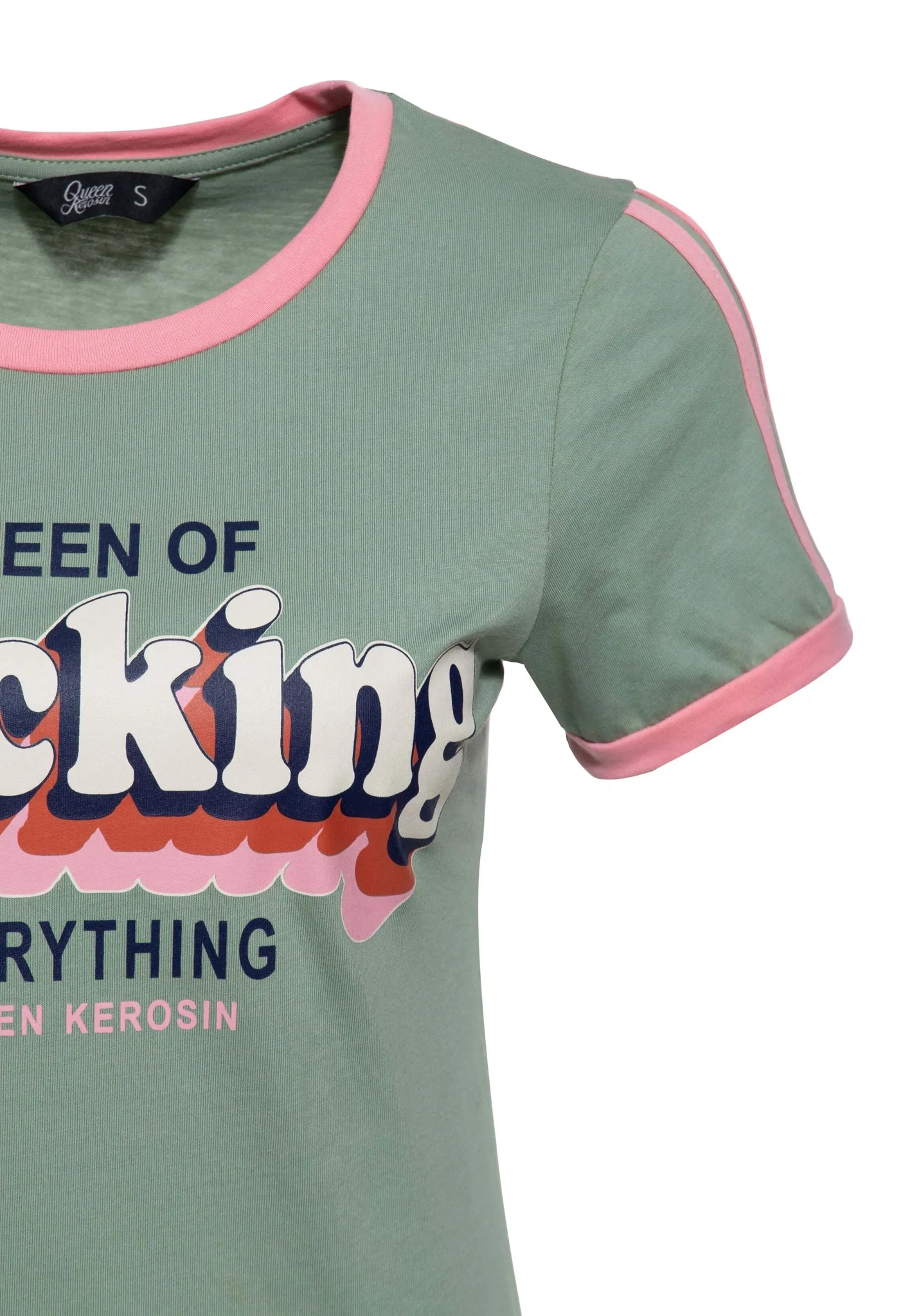 Lisa oma garderoobi julget attitude’i Queen Kerosin Queen Of Fucking Everything T-särgiga. See statement-T-särk ühendab enesekindla sõnumi ja retrohõngulise disaini, luues pilkupüüdva välimuse neile, kes ei karda silma paista.