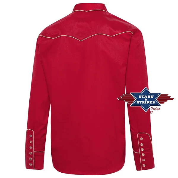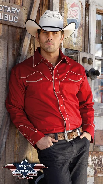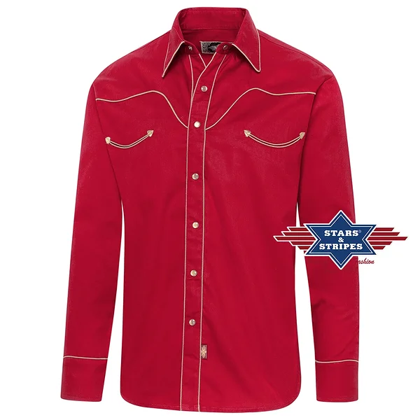 Lisa oma garderoobi klassikalist cowboy-stiili Stars & Stripes Jack särgiga. See punane western stiilis meeste särk ühendab puhta lõike ja kontrastsed detailid, luues autentse ja ajatu välimuse.